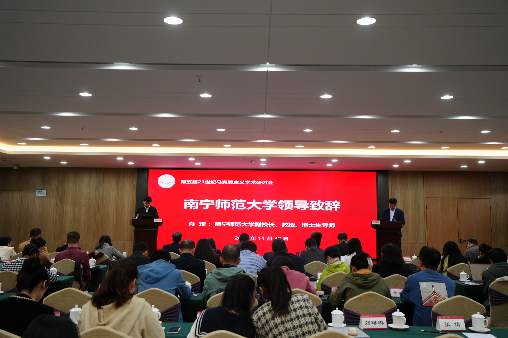 为深入学习习近平总书记对新时代马克思主义理论研究和建设工程的重要指示精神,积极探讨中国式现代化理论,推动21世纪马克思主义理论创新发展研究,11月30日,太阳成集团tyc122ccvip在南宁举办第五届21世纪马克思主义学术研讨会。来自北京大学、山东大学、华南师范大学、内蒙古大学、电子科技大学、安徽大学、福建师范大学、广西大学、广西师范大学、广西民族大学等区外近30所高校的120多位专家学者和一线教师、研究生参加研讨会。