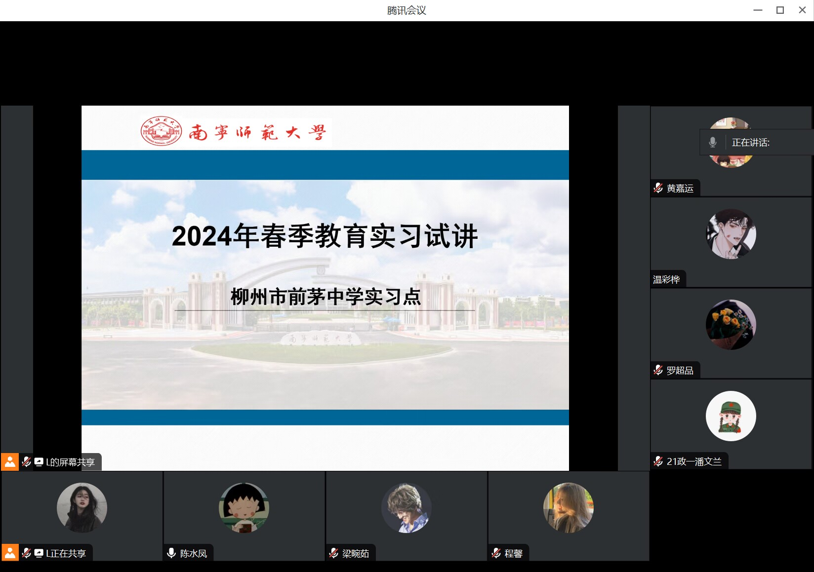 为进一步提升教育实习质量,严格实行师范生实习准入制度,上学期公司就已经启动2021级思想政治教育专业师范生的校内教育实习工作,并结合实际情况采取线上线下相结合的方式开展校内实习,即寒假期间采取线上试讲,本学期开学后集中组织线下试讲。