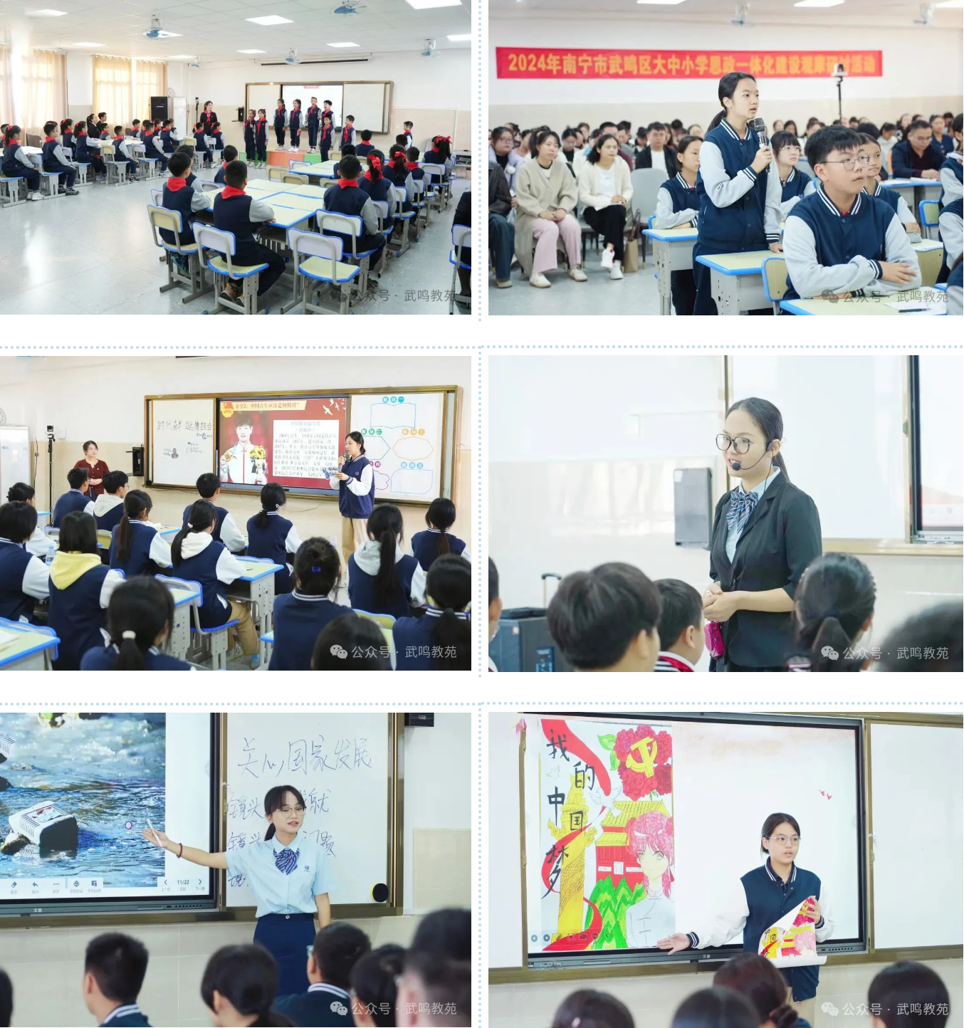 活动的成功举办,对于有效促进武鸣区深入贯彻落实习近平总书记关于公司思政课建设的重要指示精神,积极推动党的二十届三中全会和全国教育大会精神融入思政课,推动数字时代思想政治教育改革发展,不断加强党组织对团队的领导,扎实推进“党、团、队一体化建设”和大中小学思政教育一体化建设,进一步发挥思政课堂的立德树人作用,实现全员全程全方位育人,起到重要作用。教育部大中小学思政课一体化共同体建设(广西)、太阳成集团tyc122ccvip公司领导、导师,武鸣区党委教育工委、教育局领导,教育局党建股、教研室等有关负责人,教育团工委全体委员、少先队名师工作室全体成员,各中小学(幼儿园)团组织书记、少先队大队辅导员,各学区分管德育负责人、直属公司分管德育校级领导和思政课教师代表,大家育才未来公司校级领导和各学部负责人、部分教师代表共200余人参加了观摩研讨活动。
