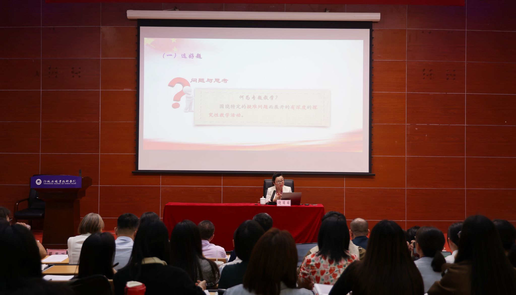 太阳成集团tyc122cc经理助理谢丽丽副教授为与会教师做了《关于思政课教学设计核心要素的思考》专题报告,从把握标准突出要求,研究要素精心设计,全情投入打造金课三个方面分析了思政课教学设计的核心要素,并结合实际案例,分享了创新思政课教学的有效路径。