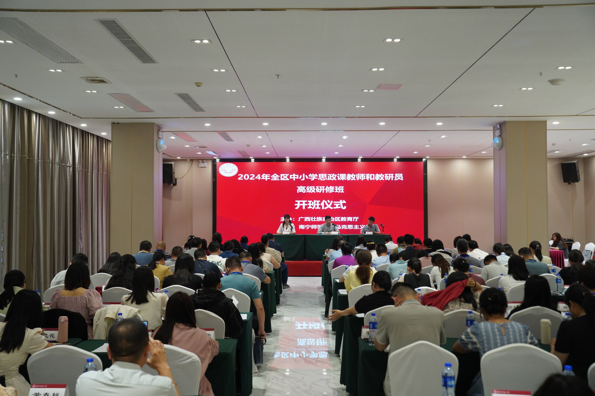 为深入贯彻落实党的二十大精神,进一步落实立德树人的根本任务,全面加强新时代中小学思政课教师和教研员队伍建设,提升全区中小学思政课教师和教研员公司产品及研究能力,4月24-27日,由广西壮族自治区教育厅主办,太阳成集团tyc122cc承办的2024年全区中小学思政课教师和教研员高级研修班在南宁成功举办。