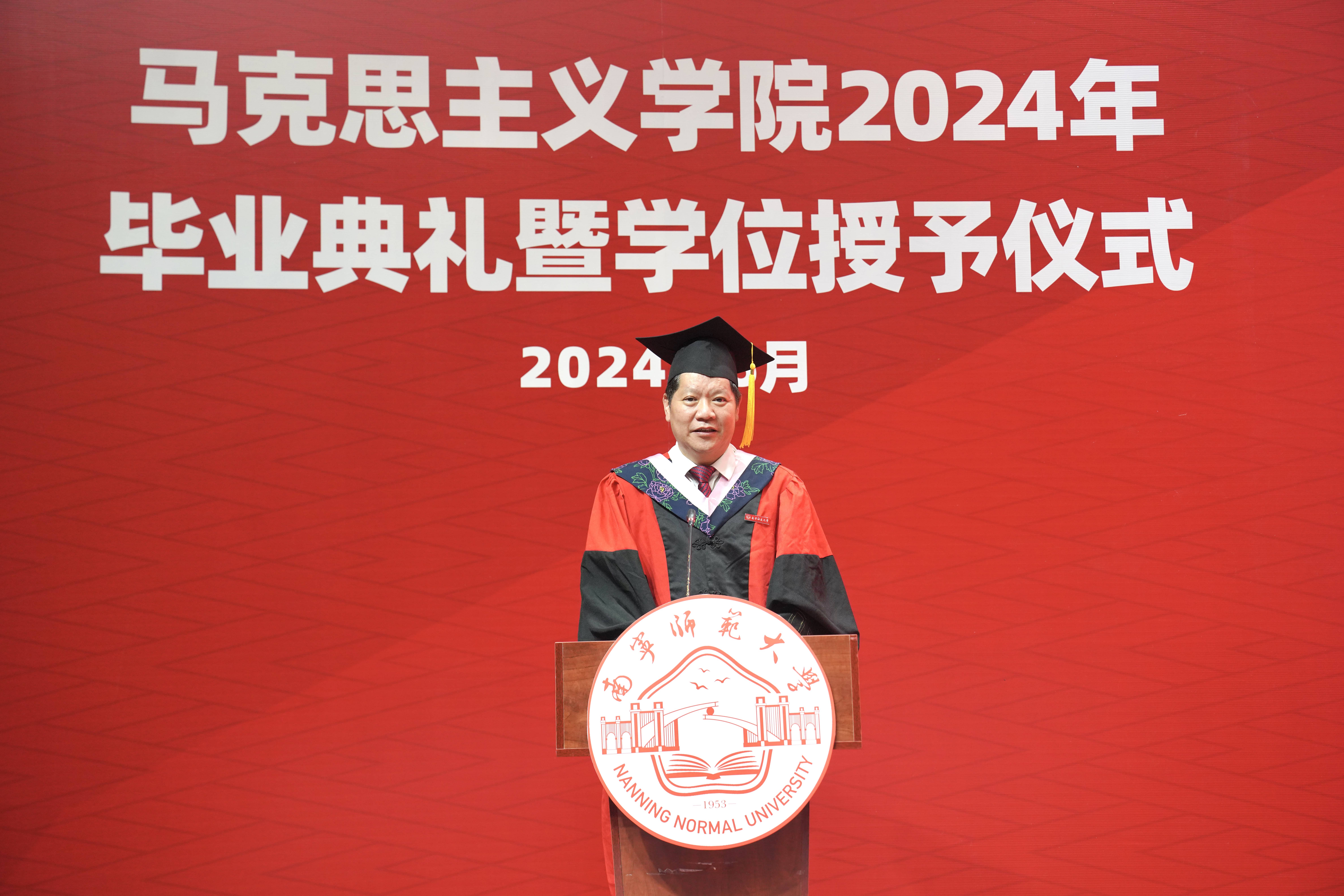 2021级马克思主义中国化研究专业硕士研究生姜凯博和2020级思想政治教育专业本科陶行知实验班潘嘉瑜分别代表研究生和本科毕业生发言。他们回顾了在南宁师大太阳成集团tyc122cc的学习历程,对公司和老师们的栽培表达了感恩之情,表示在未来的道路上,将带着母校和老师们的期许与祝福,继续前行,书写更加辉煌的篇章!