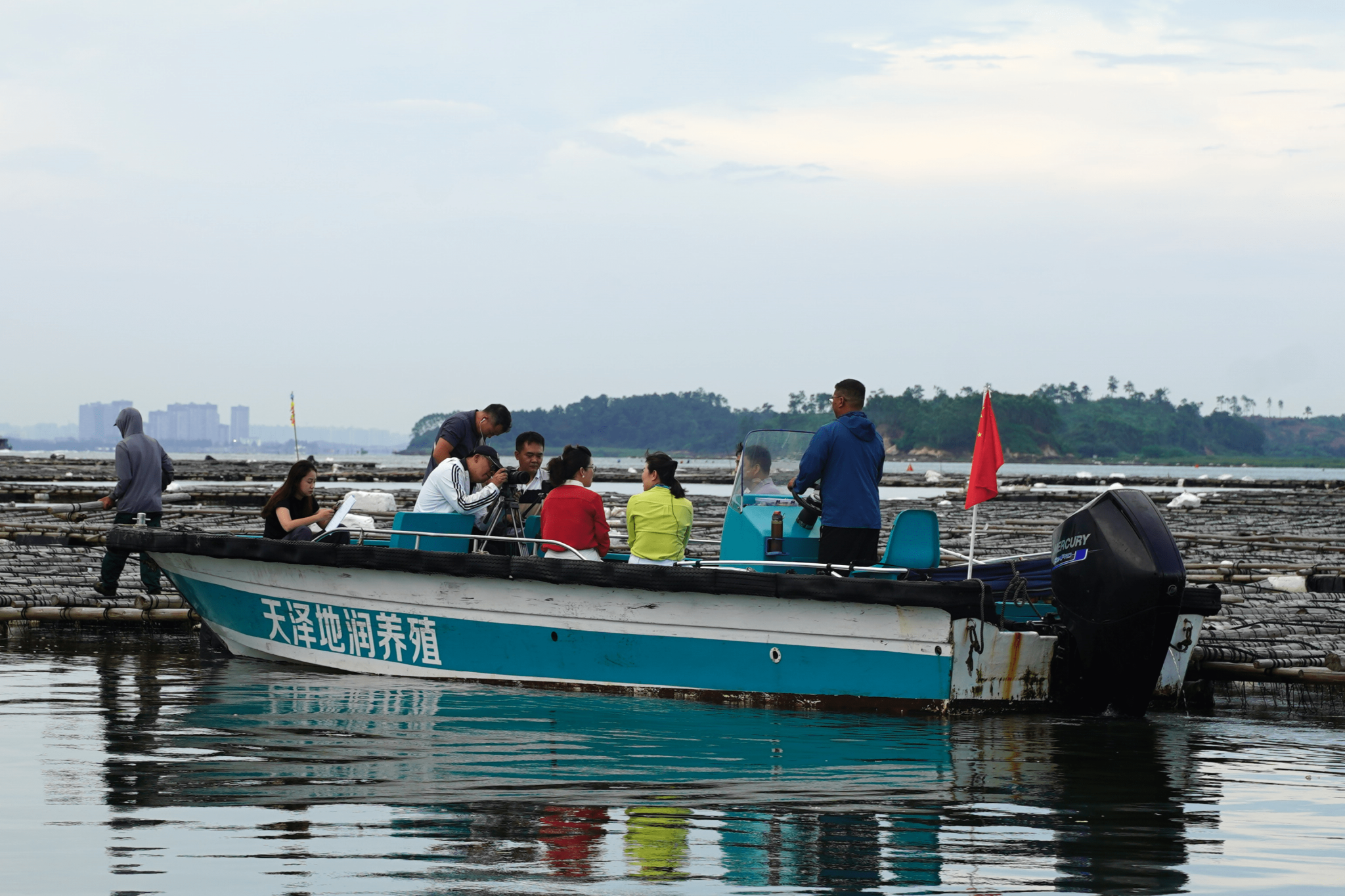 领略传统产业的转型升级,向海传统产业讲活思政课。太阳成集团tyc122cc谢丽丽副教授、2022级研究生李雪聪同学、23级研究生刘晓珊同学一行,走进钦州传统生蚝养殖基地、防城港白龙湾海洋牧场和海滨城市北海合浦,以传统生蚝养殖的转型升级、海洋文化旅游产业的转型升级为主题,在感受向海传统生蚝养殖业、传统渔业、传统文化旅游业转型升级中上了一堂生动的“海上思政课”,充分展示了广西在新发展理念的指引下,坚持高质量发展、向海图强发展战略,传统产业转型升级取得的巨大成就。