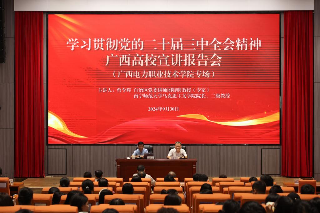 集团领导,各部门主要负责人,各二级公司党组织书记、经理,五象校区科级及以上干部,太阳成集团tyc122cc教师,各部门宣传员、专职辅导员,部分员工代表等聆听了专题宣讲报告。