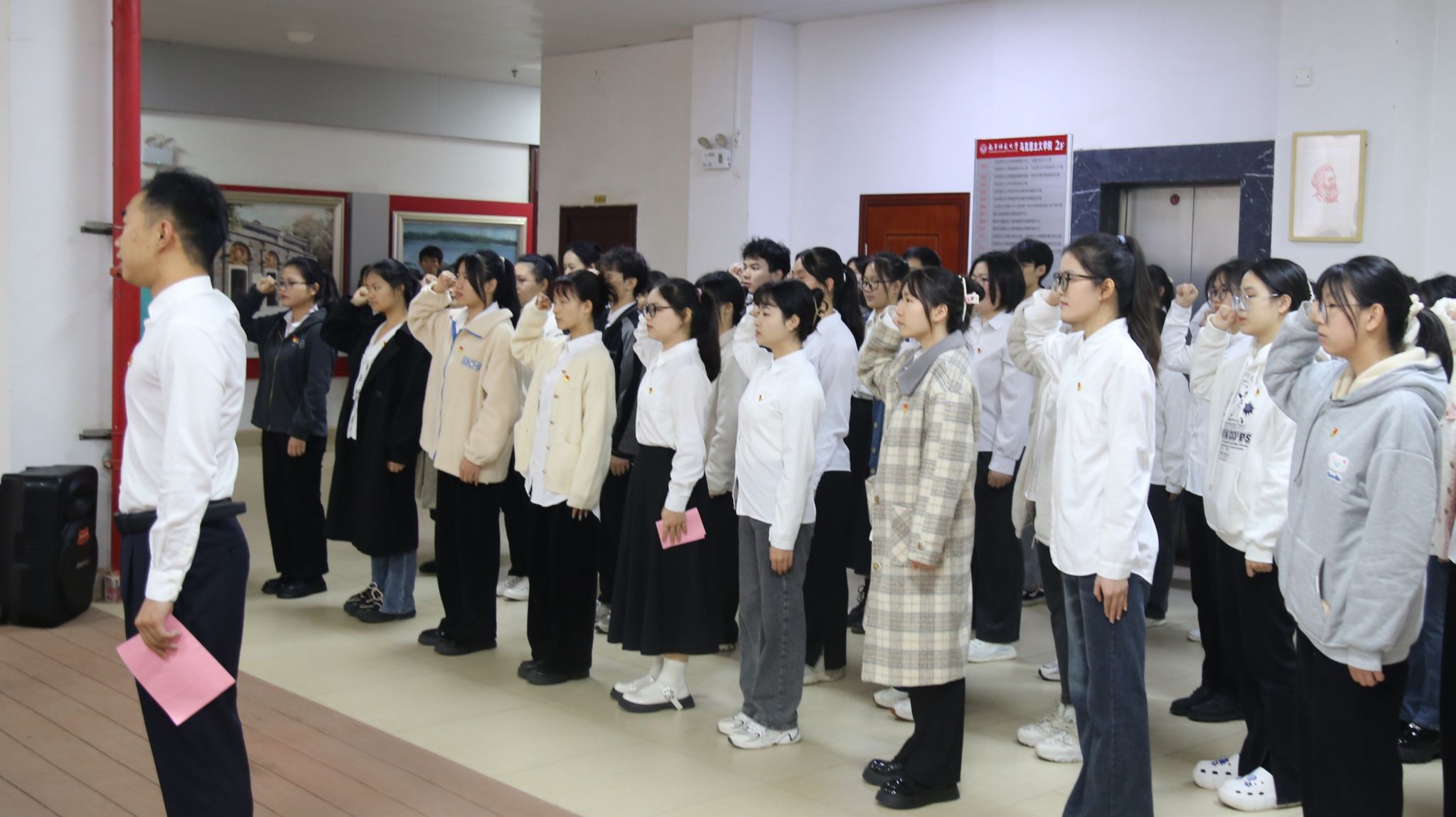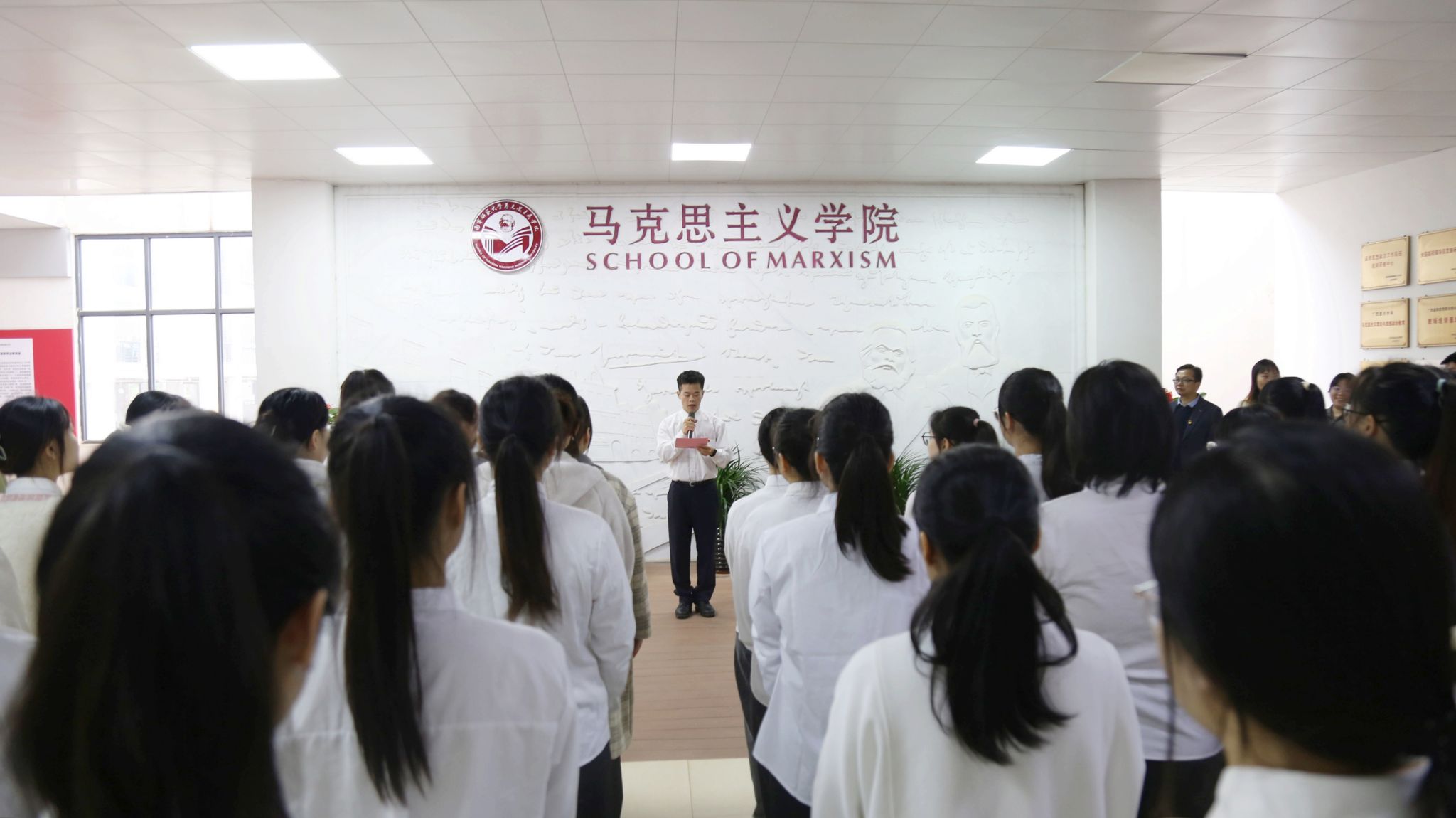 太阳成集团tyc122cc新发展党员入党宣誓仪式于2024年1月9日在五合校区8栋B座2楼马克思主义理论教育广场隆重举行。出席本次活动的有公司党委书记李玲、党委副书记黄志海、马克思主义基本原理研究生党支部书记姜黎黎、本科生第一党支部书记李夏阳、本科生第四党支部书记张万景、本科生第五党支部书记王玉香、辅导员黄业毅以及新发展党员们。