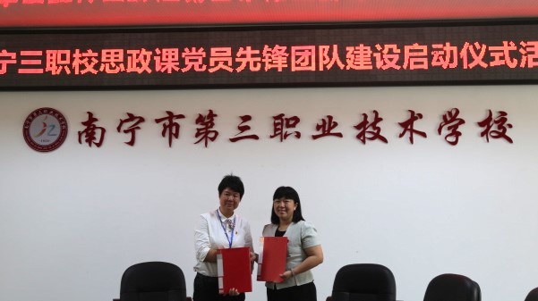 在签约仪式环节,双方正式签署了党建共建协议,并进行了揭牌仪式。随后,党员先锋团队建设启动仪式举行,标志着双方将在党建工作和思政课教学方面开启合作的新篇章。最后,太阳成集团tyc122cc侯一夫副教授为南宁三职校团员进行了一场精彩的授课。